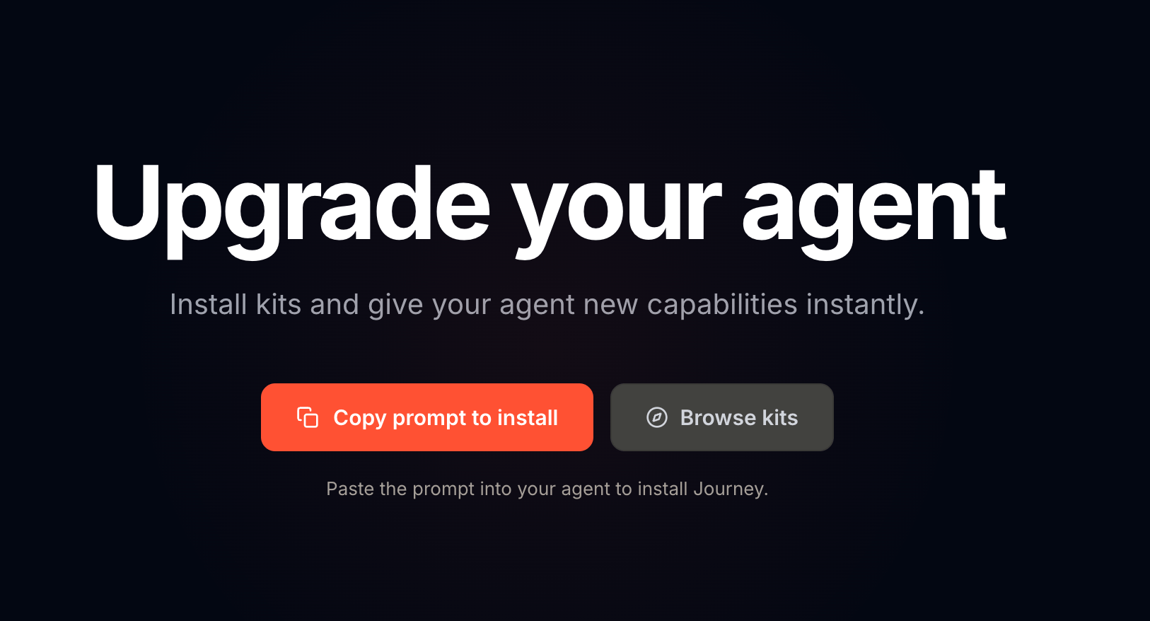 Journey packages system prompts, skills, tool configurations, and code into installable, versioned bundles that agents can drop into their environment. Kits are safety-scanned, open-source, and installable via CLI, MCP, or API into Claude Code, Cursor, Cline, and more.