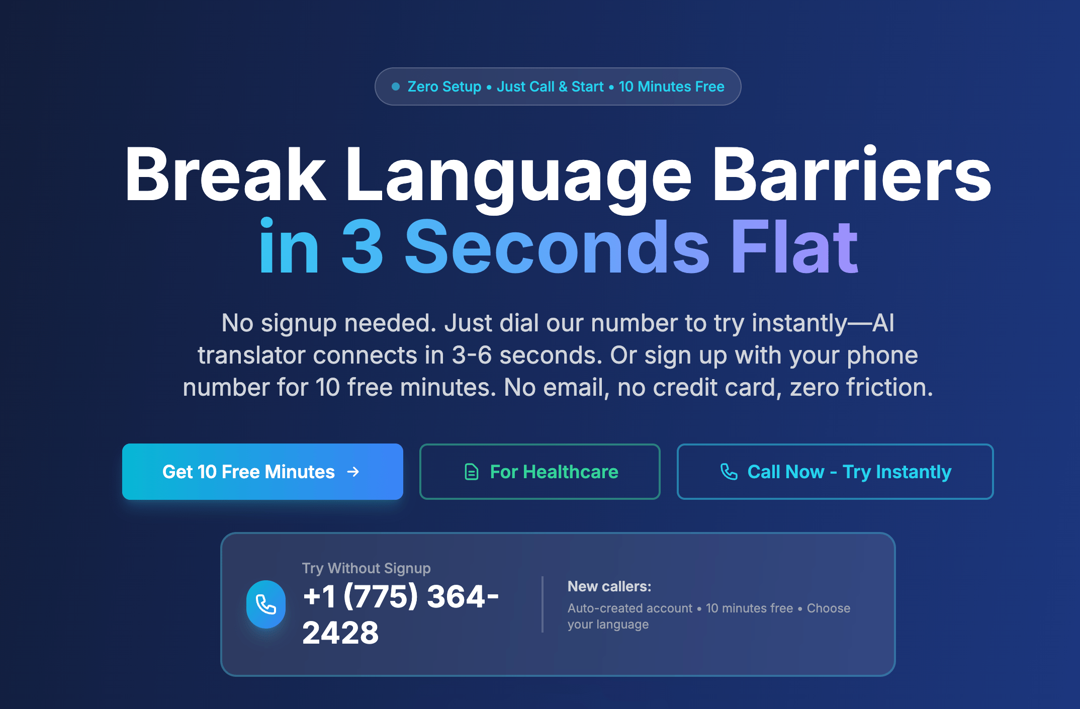 Trio is an AI-powered real-time phone interpreter that connects instantly when you dial a service number. It delivers simultaneous translation in three to six seconds, no app or setup required.