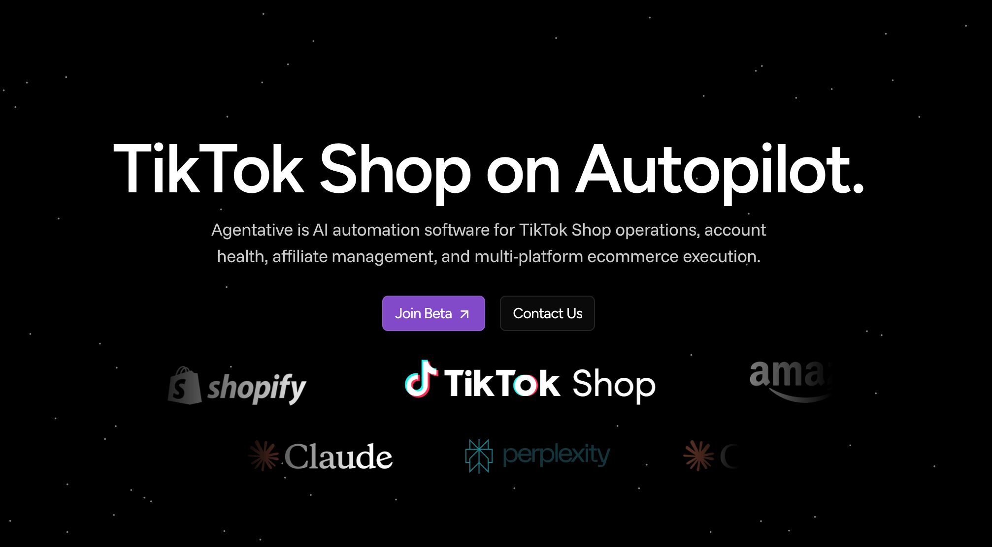 Agentative uses autonomous AI agents to automate TikTok Shop and multi-platform e-commerce operations—order management, inventory, affiliate discovery, customer service, and AI-driven marketing.